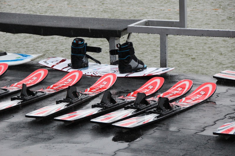 Das Einfangen von Skiern während obercoole Wakeboarder mich mit spritzigen Wasserfontänen fast zum Absaufen bringen, war eine Heldentat, die ehrlich gesagt wenig vom zuschauenden Publikum gewürdigt wurde. Gut, dass es in diesem Moment donnerte. Alle raus aus dem Wasser. Danke Petrus für diese Pause im schön warmen Frotteetuch. „Möchtest Du was trinken?“ „Och nö, hatte schon reichlich.“