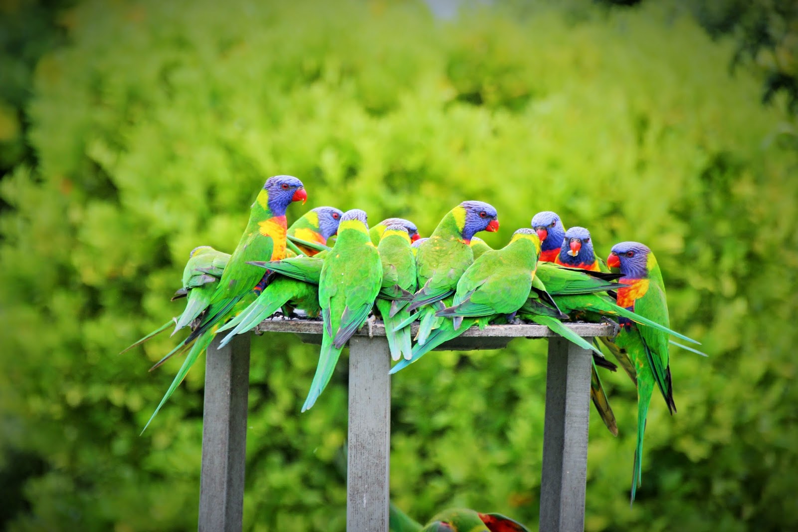 Ganz im Gegenteil dazu sind die Scharen von sulphur crested cacadoos, die die Baumwipfel bevölkern und dabei ein Spektakel veranstalten, das einem Hören und Sehen vergeht. Mitunter sind sie sogar sehr zutraulich. Ebenso die Loris oder Rosellas, die teilweise sogar Vogelfutter aus der Hand fressen und auf der Schulter landen. Aber hier gilt und daran haben wir uns immer gehalten „Keep wild life wild.“
