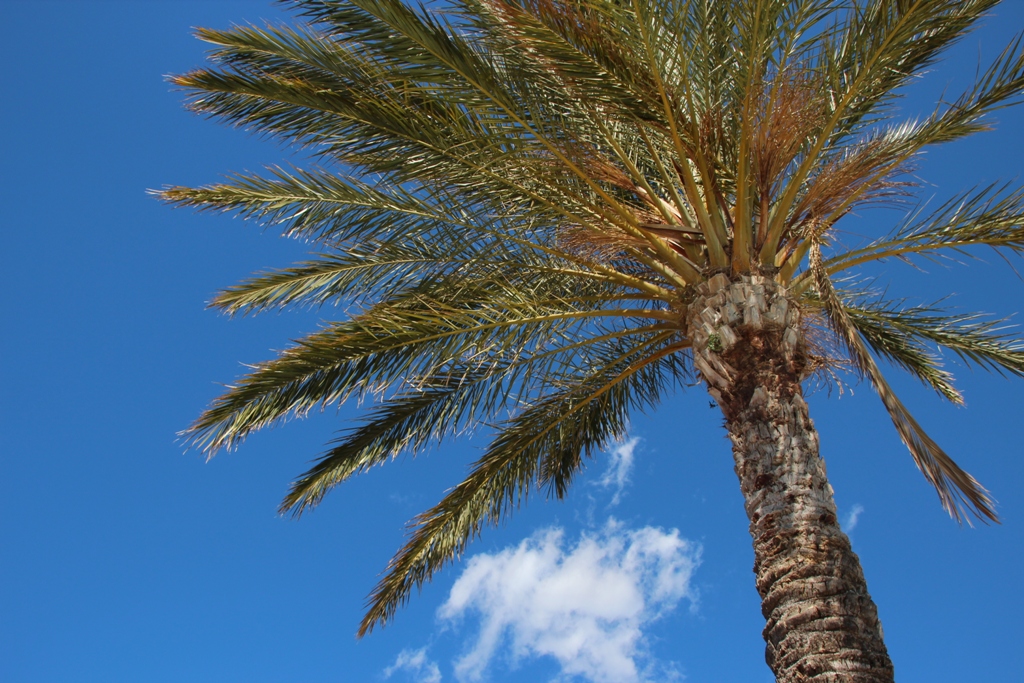 Na gut, dann eben die Vögel fotografieren. Die sind auch unsichtbar, dafür aber laut. Sie bevölkern die höchste Palme am Pool, zetern, zwischtern, tschilpen, flöten, fiedern, turteln und flattern was das Zeug hält. Italiener halt. Es geht hoch her in der Palme. Ich nähere mich barfüßig schleichend mit dem nach oben gerichteten Tele. Mit einem Schlag verstummt die Bande und als hätte ich die Palme mit einem Schrotgewehr beschossen, stürzen sich sämtliche Federlinge in einer spontanen Gruppendynamik, die nach geübter Choreografie aussieht, kopfüber in den nächsten Oleanderbaum, wo es – in sicherem Abstand zu der Frau mit dem Telegewehr – munter von vorne losgeht. Und das mir als Pazifistin! Ich schleiche mich wieder an. Dieses Mal stieben sie sternförmig auseinander und landen – genau – in der größten Palme. Das Spiel hätte so weitergehen können, wenn meine Aufmerksamkeit nicht von anderem Getier angezogen worden wäre.