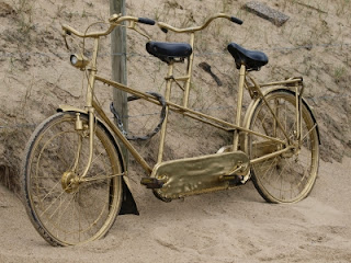 „Und dann wäre das mit dem Lenken ja nicht so dolle, Du weißt selbst, wo ich manchmal hinlenke und das mit nur einem Rad. Und dann liegen wir samt Tandem verletzt in den Dünen rum, bluten und keiner merkt das und unser Kind wächst alleine auf.“
