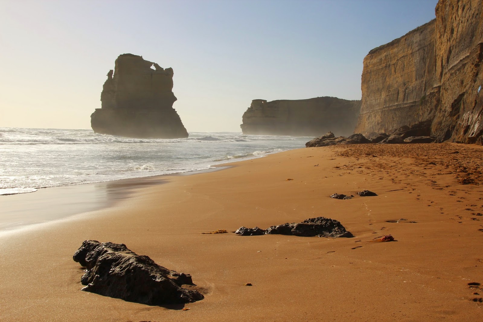 Das Meer an der Great Ocean Road ist eisig kalt. Hier schnappen sich Anwälte und Dozenten in Neoprenanzügen ihre Surfboards von den Autodächern auf der Suche nach der perfekten Welle noch vor Morgengrauen. Wenn man Glück hat, gibt es am Strand eine Bude der Lifeguards, die bis max. 17 Uhr ernsthaft ihrem Dienst mit Fernglas und Flüstertüte nachgehen. Danach ist man auf sich gestellt. Geschwommen wird kaum, max. geplanscht und auch das oft nur im schützenden Neopren. An der ganzen Küste rund um Melbourne finden sich immer wieder einsame Strände, vereinzelte Möwen kreuzen mal den Weg und das war’s auch schon. Ich bin im Paradies.
